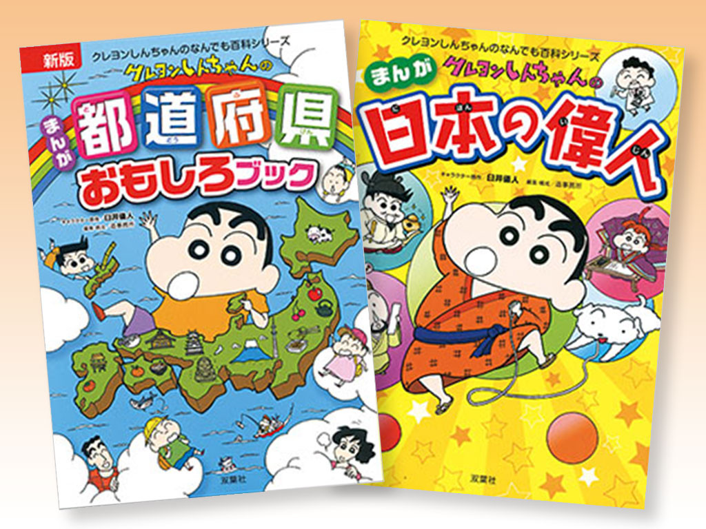私たちが住んでいる日本の都道府県について、そして歴史上の偉人について、しんちゃんと一緒に楽しく学べる2冊組です!「都道府県おもしろブック」は、土地ごとの歴史や特産品など、学校の勉強に役立つ知識はもちろん、雑学や小話などが満載!「日本の偉人」は新しいお札の肖像画に採用された渋沢栄一、津田梅子を含めた20人の偉人を紹介!成し遂げたこと、後世への影響など偉人たちの人生を漫画で分かりやすく解説しています。